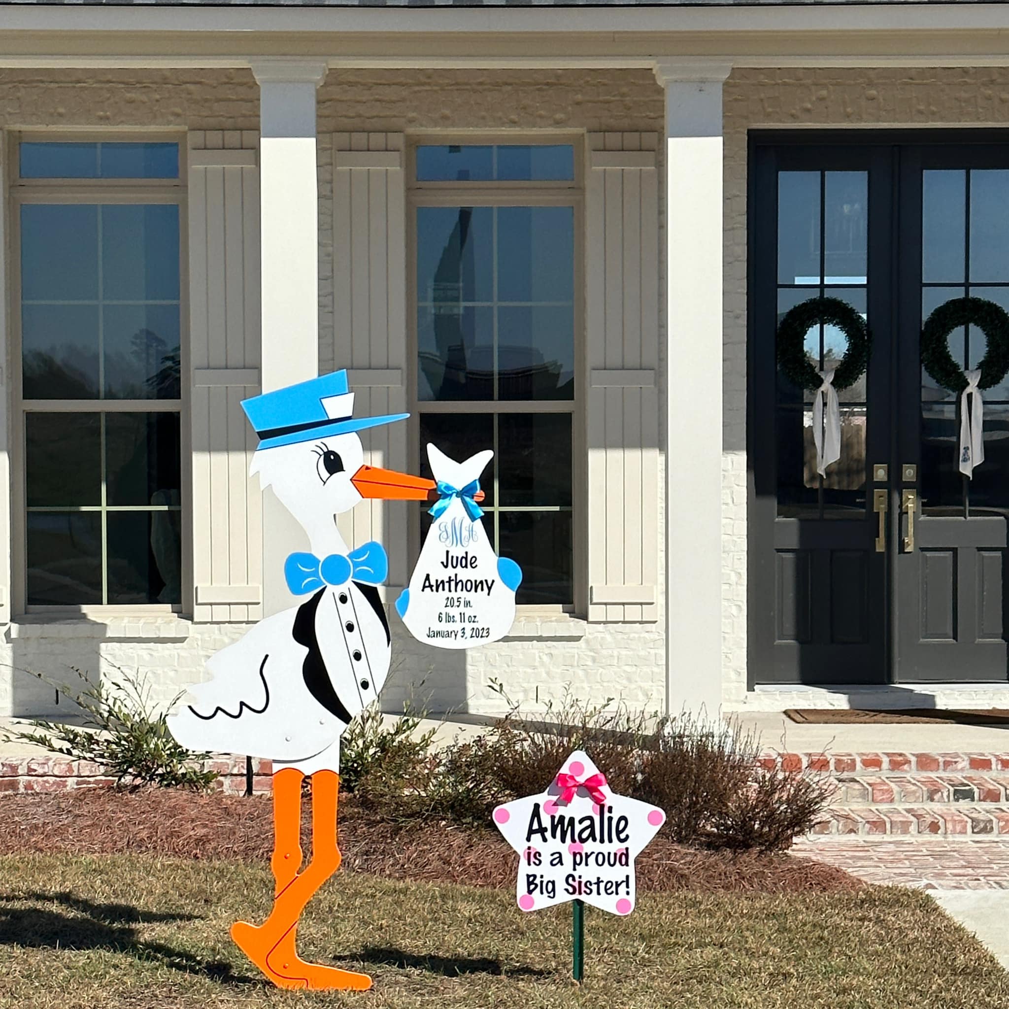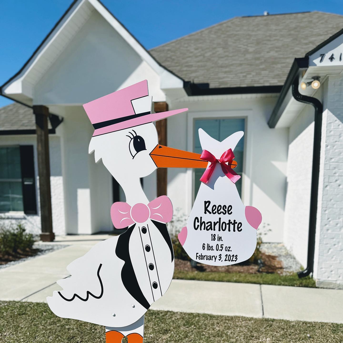 Celebrate life’s sweetest milestones with Velvet Moon Stork Rental, your trusted source for stork yard sign rentals in Gainesville and surrounding North Florida communities. Our enchanting 6-foot stork signs offer a heartwarming and unforgettable way to share your joyful news, whether you’re announcing a new baby, celebrating an adoption, or surprising proud grandparents. Each stork display is thoughtfully crafted to bring smiles to your neighbors and create the perfect photo-worthy moment right in your front yard.